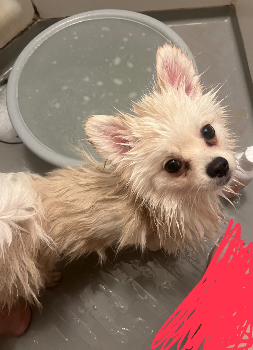シャワー中もおとなしくしてたみたいで、写真を送ってくれました。