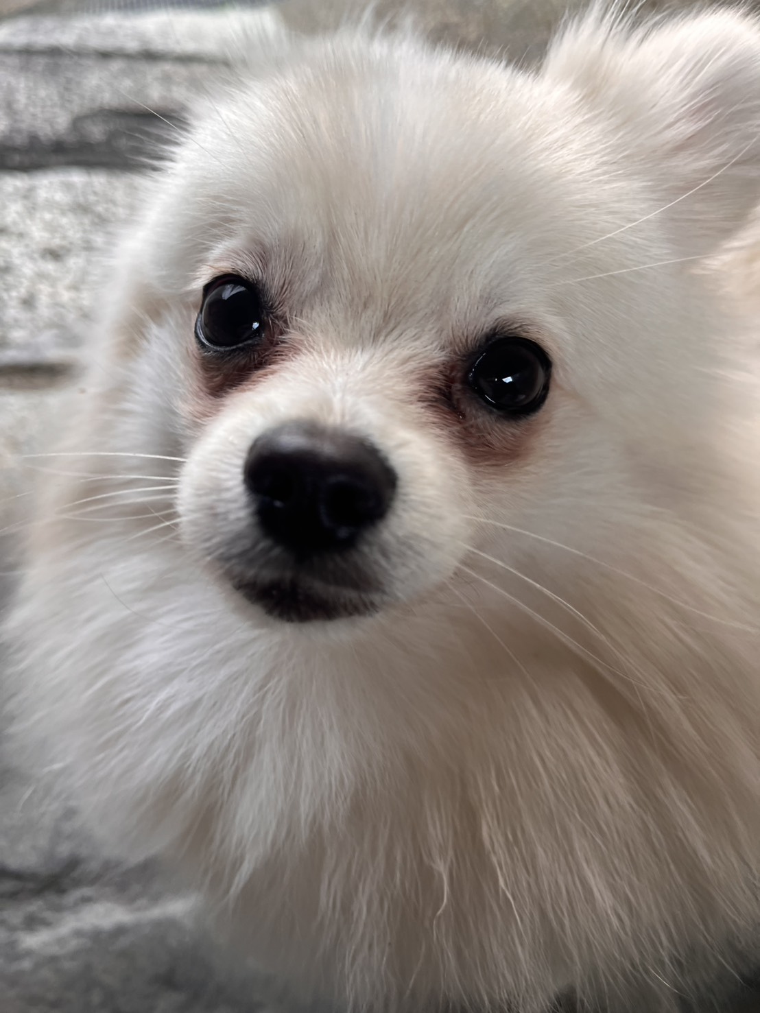 最近。迎えた白ポメちゃん。 現在約8か月とまだ子犬でございます。